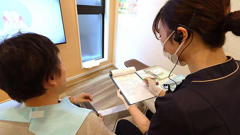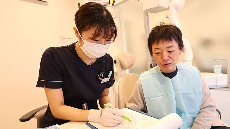 どんな食事をしているのか?などを聞くのに、歯科衛生士から管理栄養士にバトンタッチします。