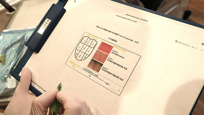 問診後に検査をして、お口の機能低下が確認された状態です。